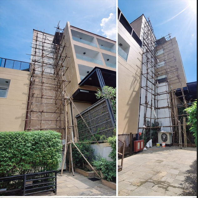 Wall waterproofing work at Regenta Resort focused on sealing exterior walls to prevent water ingress and dampness. High-quality waterproof coatings were applied to enhance durability and protect the structure from moisture damage.
